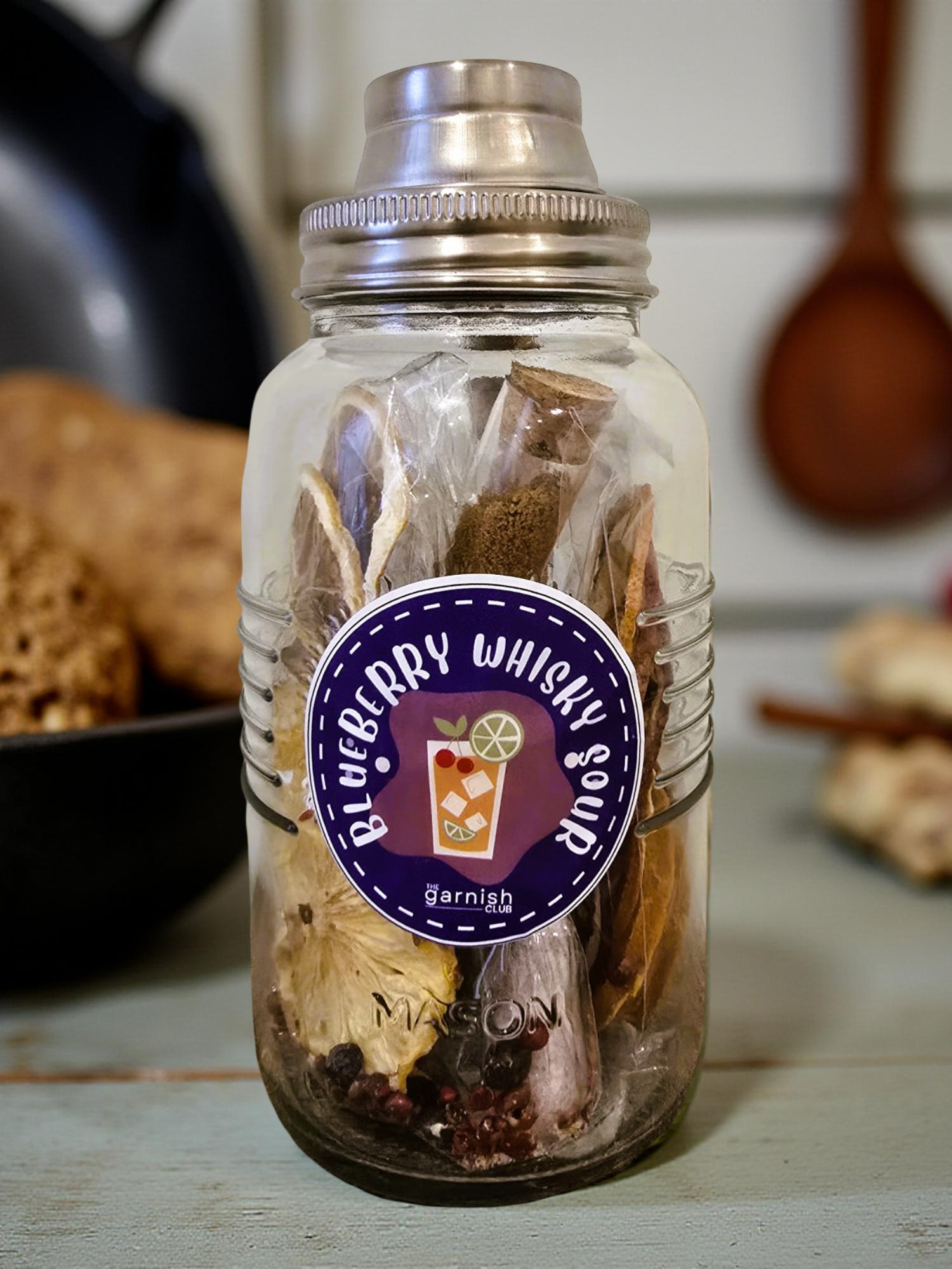 Includes pineapple, lemon, orange, and blood orange garnishes, blueberry and orange salts, juniper berries, dried blueberries, and light muscovado sugar for smooth, balanced infusions.