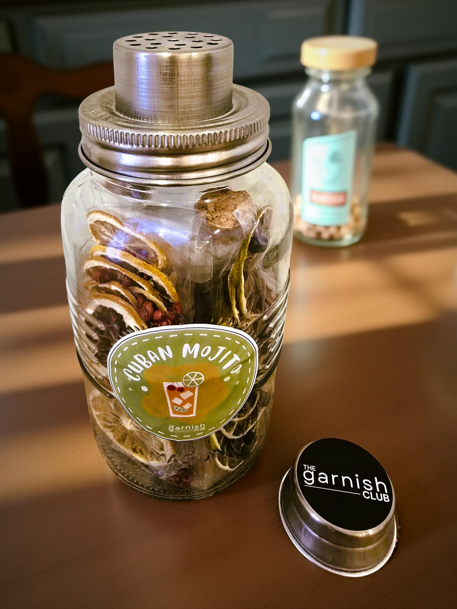 Cuban Mojito Shaker Cocktail Kit by The Garnish Club, beautifully presented in a premium reusable 1L mason shaker glass jar — a refreshing blend of citrus, mint, and sweetness.
