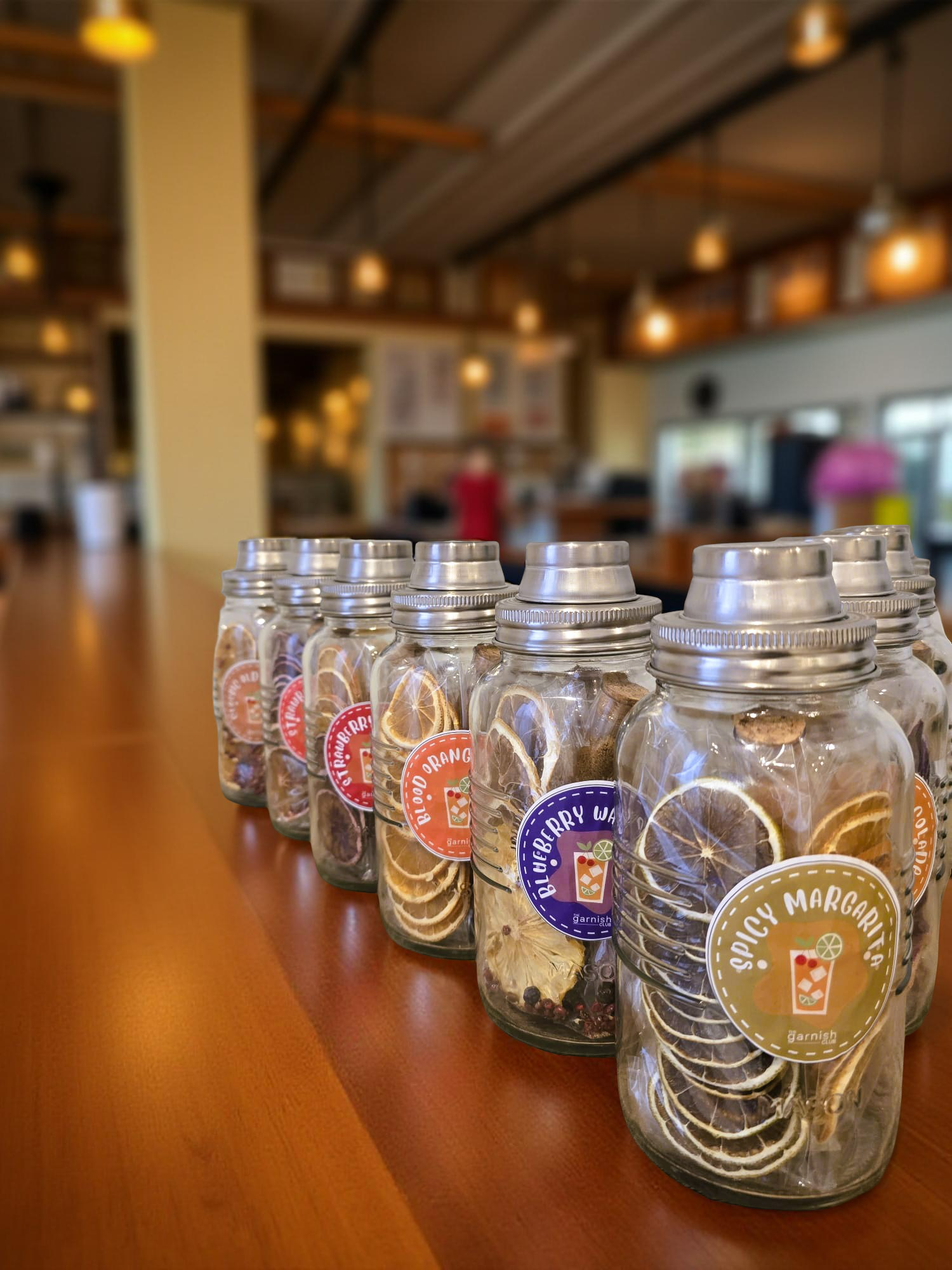 Includes lime and blood orange garnishes, muscovado sugar, raspberry and orange salts, hibiscus flower, and dried cranberries for beautifully balanced infusions.