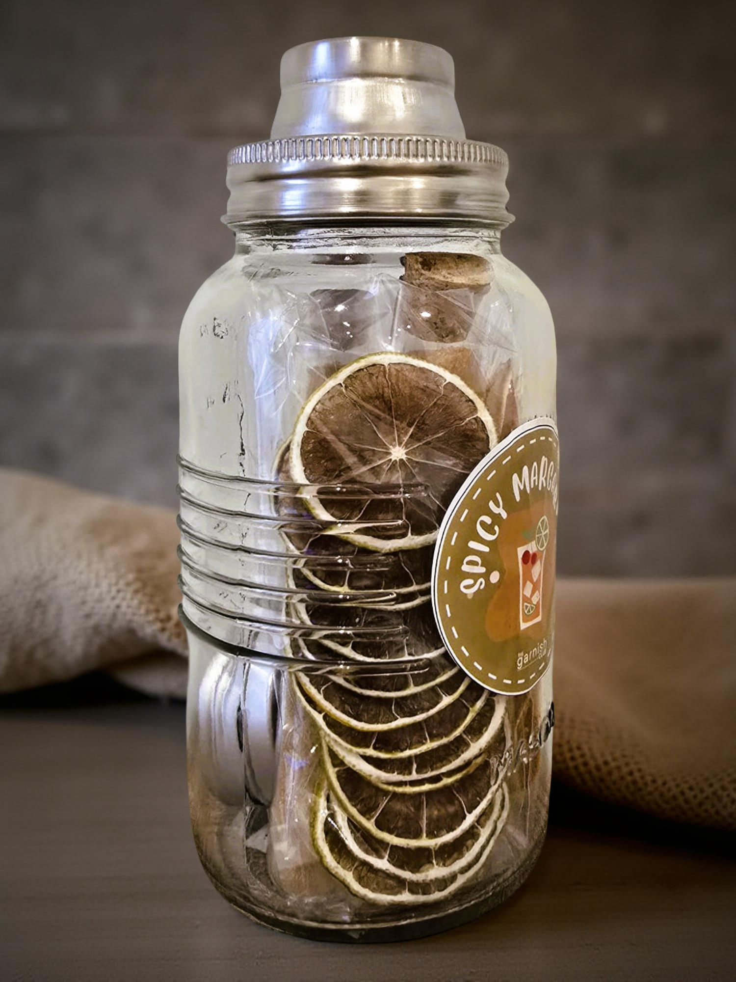 Spicy Margarita Shaker Cocktail Kit by The Garnish Club, beautifully presented in a premium reusable 1L mason shaker glass jar — the perfect balance of heat and citrus.