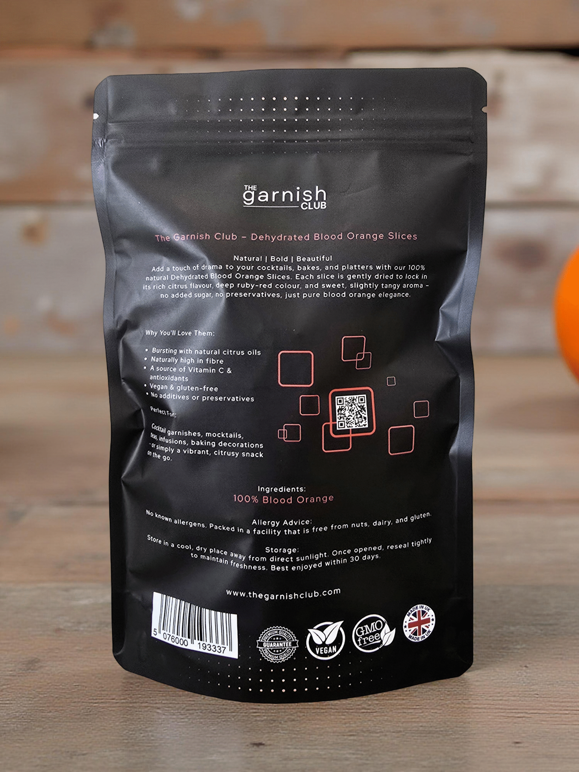 - 60g, 120g or 250g Pack: Each pouch contains premium dried blood orange slices, perfect for multiple uses at home or in a bar.